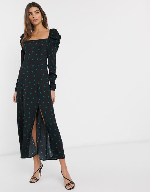 Other Stories Polka Dot Puff Sleeve Midi Dress In Black Asos